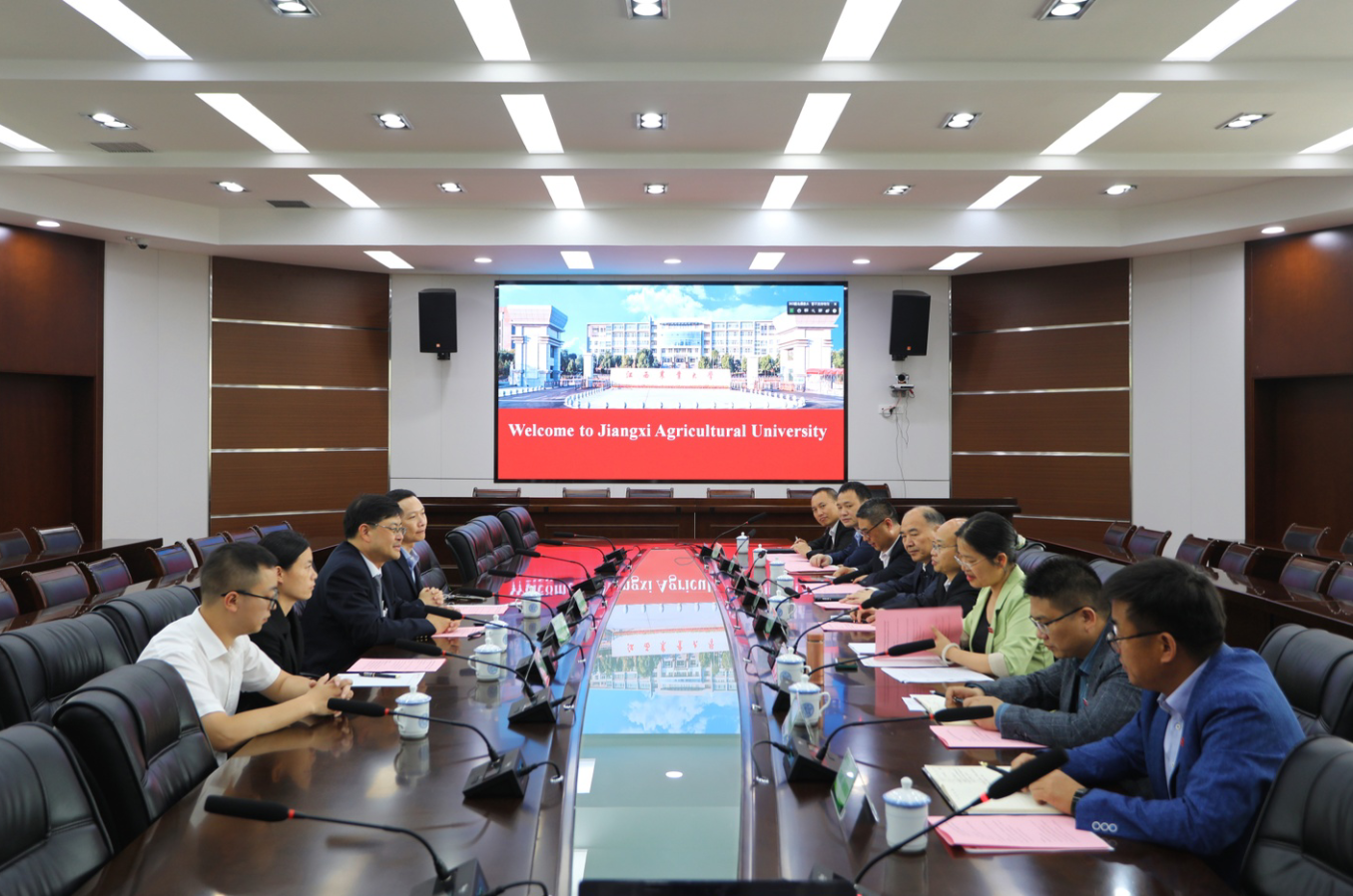 5月24至26日,为进一步推动智慧农业联合实验室合作事宜,泰国朱拉隆功大学行政、战略、学术及研究部副主任Thiti Bovornratanaraks、科学学院化学技术系主任Prasert Reubroycharoen副教授、朱拉隆功大学授权代表吴云云女士一行三人应邀来校开展了为期三天的访问。副校长贺浩华、刘木华会见访问团一行。