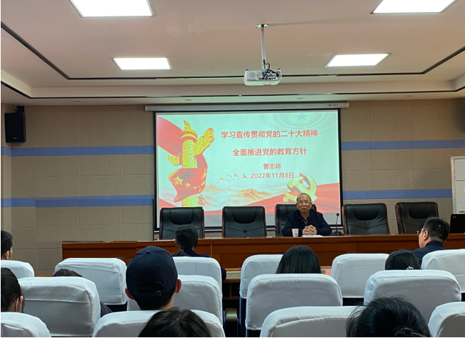 11月8日下午,校党委委员、副校长曾志将到食品科学与工程学院宣讲党的二十大精神,学院师生党员90余人参加宣讲会。
