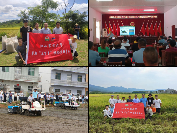 学科骨干教师积极为省农业现代化发展建言献策,牵头制定了《江西省水稻机械化直播生产技术规程》。指导专业学生牵头组建了“农业机械化新技术试用示范与推广应用”暑期“三下乡”社会实践活动服务队,积极开展社会服务,深入田间地头开展科技帮扶与技术培训。每年分别在都昌、吉安、新建、袁州等21个县(市/区)开展农业机械化新技术试用示范与推广应用,累计示范面积2千余亩,组织召开了现场观摩与培训会20余场次,培训地方农机职能部门工作人员、农机合作社新型经营主体等1800余人次,发放技术资料2000 余份,辐射推广7万余亩,助力江西农机化水平提升与脱贫攻坚成果,获得了社会广泛关注与一致好评,被评为省级“优秀服务队”。