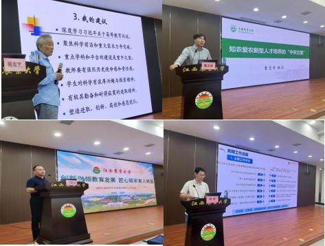 本次研讨会上,邀请了复旦大学陈家宽教授围绕习近平总书记关于教育的重点论述作报告,他阐述了我国高等教育和现代科教的发展历程及推动高质量内涵式发展的“复旦”案例。邀请的中国农业大学曹志军教授,重点介绍了知农爱农新型人才培养的“中农方案”,从专业及课程建设、人才培养方案实施与成效、教育教学成果培育方面分享宝贵经验。随后,教务处负责人汇报了2023-2024学年本科教学工作及下学年工作打算,教学质量监督与评估中心负责人汇报了审核评估迎评的前期工作进展及后期安排。