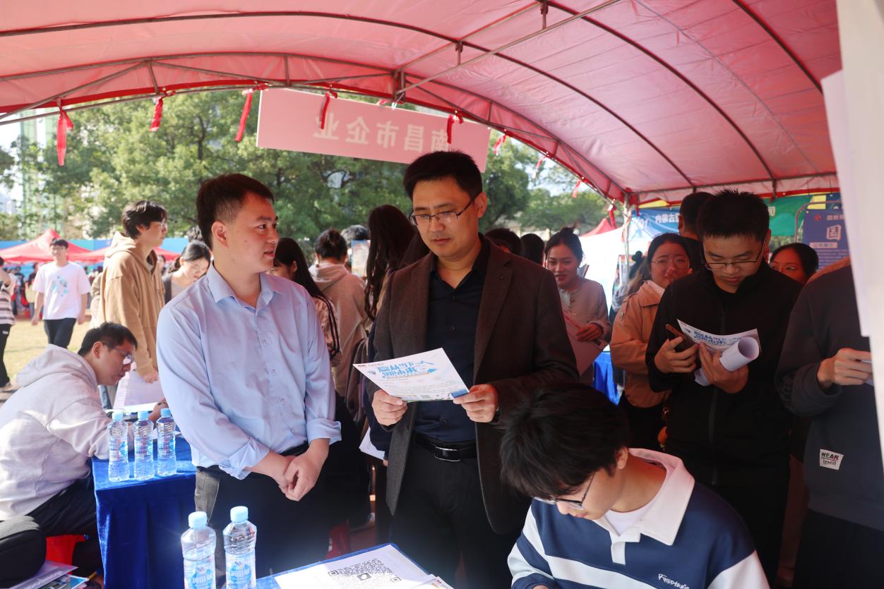 副校长张高亮与江西省就业创业服务中心负责人亲临双选会现场指导,了解双选会详细情况,并与用人单位和在场毕业生深入交流,深入了解用人单位的人才需求和毕业生就业意愿,鼓励毕业生转变就业观念,抓住就业机会,顺利尽早就业。