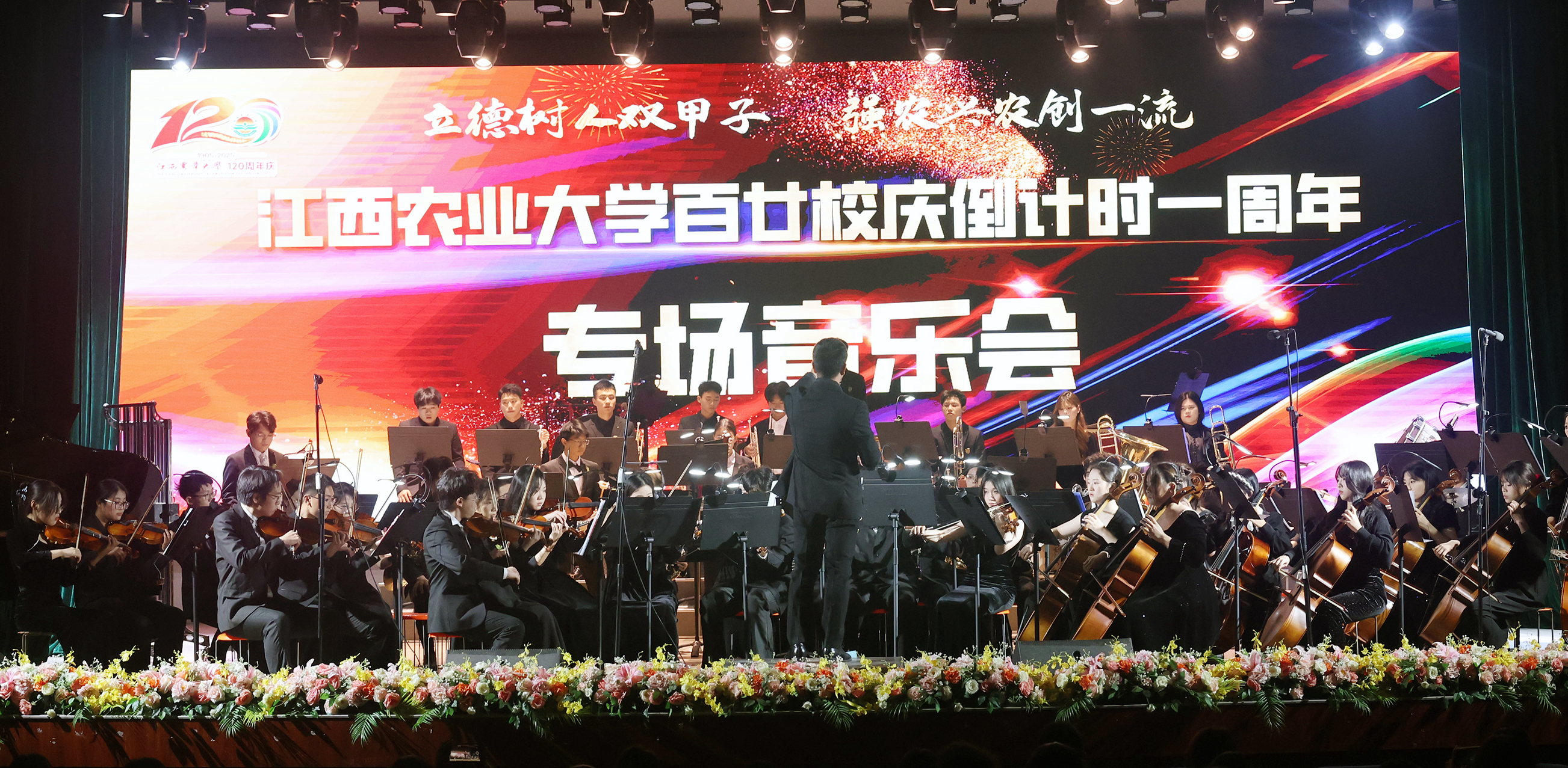 11月20日晚,“立德树人双甲子,强农兴农创一流”——百廿校庆倒计时一周年启动仪式暨专场音乐会在校大礼堂隆重举行。校领导、校友、教师、学生代表欢聚一堂,共同祝福母校119年生日快乐,见证120周年校庆倒计时一周年正式启动的重要时刻。