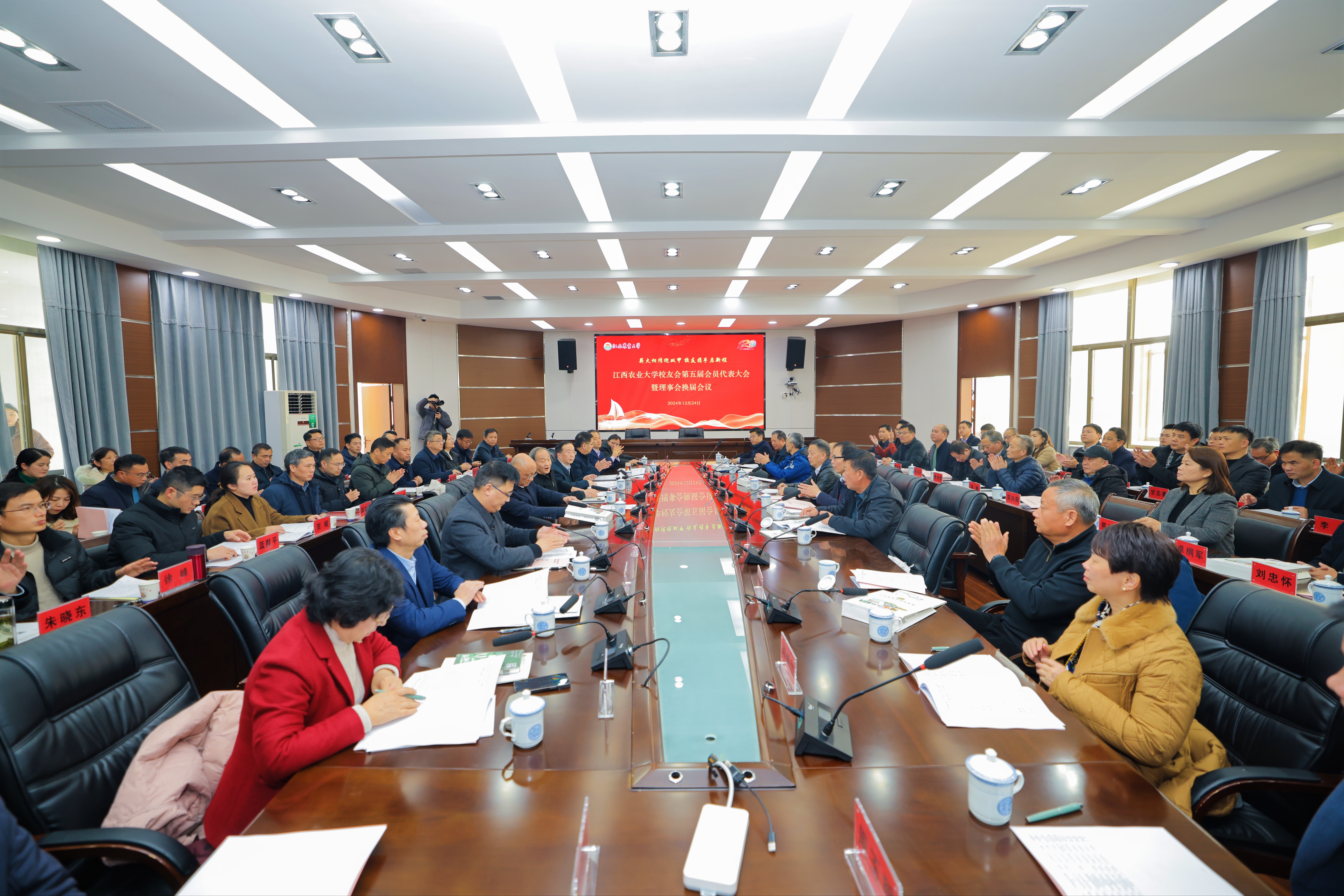 会议在庄严的国歌声中开始。魏辅文在致辞中,代表学校向各位校友表示热烈欢迎,介绍了学校在学科建设、师资队伍、科研创新和人才培养等各方面取得的办学成就。他希望校友会以这次换届为契机,不断加强自身建设,创新工作机制,拓宽服务领域,丰富校友活动,增强校友的归属感和凝聚力。希望校友以各种方式参与母校建设发展,为母校120周年校庆增光添彩。希望广大校友赓续江农精神,弘扬江农优良传统,进一步解放思想、锐意进取,躬身笃行、挺膺担当,为推进强国建设、民族复兴作出新时代江农人的应有贡献!