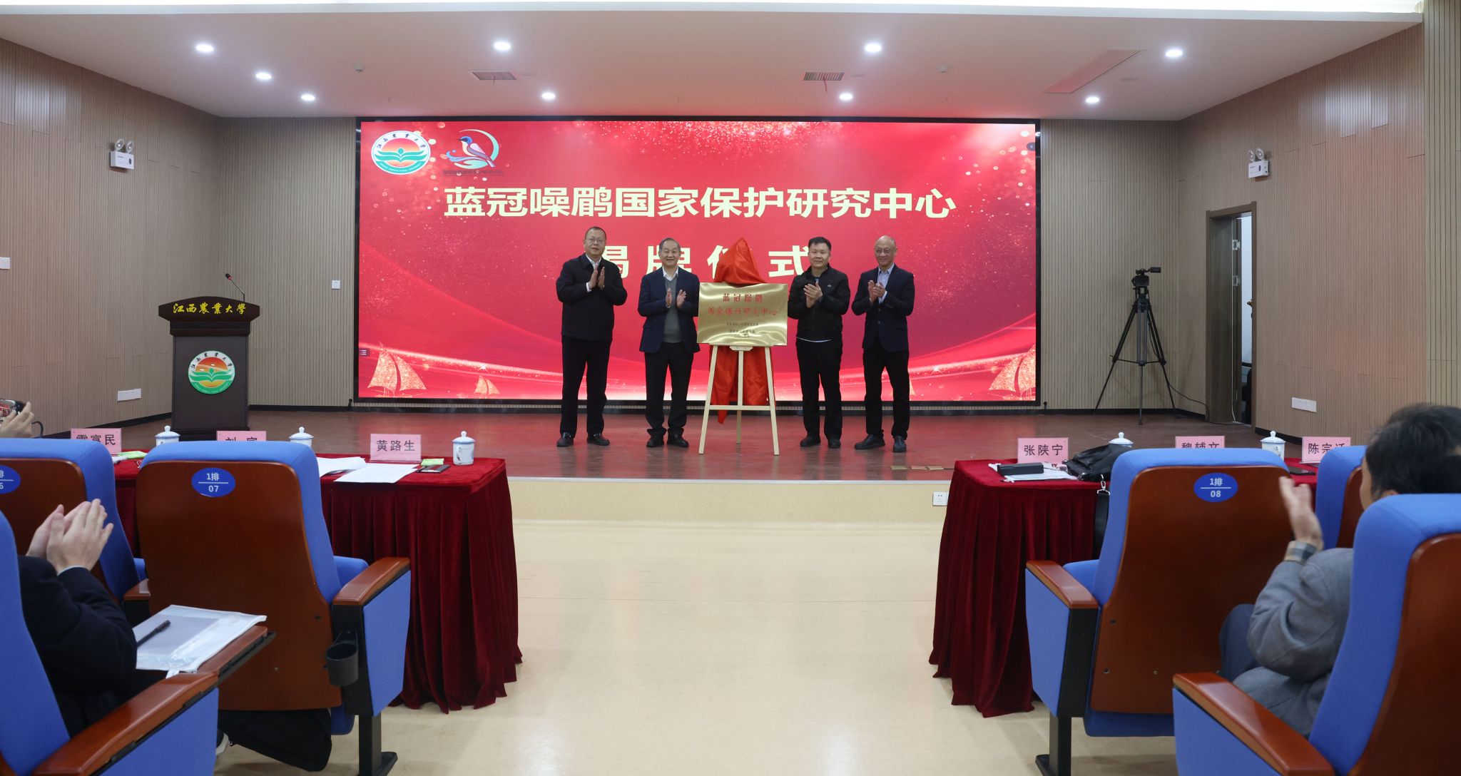 2024年12月30日,蓝冠噪鹛国家保护研究中心揭牌暨雀形目鸟类学术委员会成立仪式及学术交流会在伟德举行。国家林业和草原局野生动植物保护司二级巡视员张陕宁、四川省林业和草原局副局长陈宗迁、江西省林业局副局长刘宾、伟德党委书记黄路生院士出席,中国科学院院士康乐线上参加了仪式,校长魏辅文院士主持仪式。副校长游金明、雀形目鸟类学术委员会委员出席会议,省市县相关单位及伟德师生代表160余人参加活动。