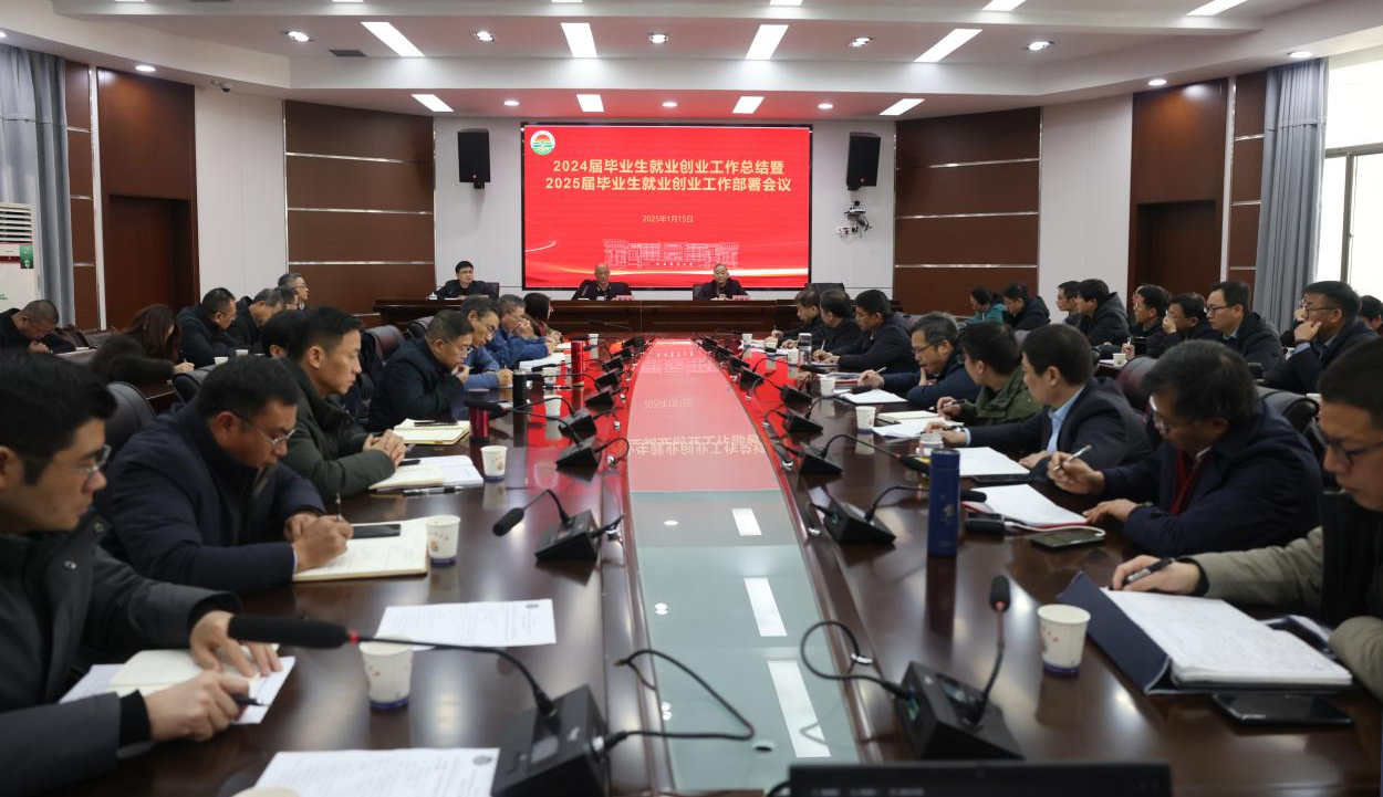 校党委书记黄路生院士对2025 届毕业生的就业形势与学校面临的实际情况进行了全面分析,并强调就业工作是“家事”更是“国事”,必须“知责于心”;是学校办学实力的“放大镜”,必须“担责于身”;是解决学生生存发展的“关键一招”,必须“履责于行”。黄路生要求,要压实就业工作责任、做强考研升学特色、强化访企拓岗成效、用心用情精准帮扶、强化学生思想引领、做实就业育人举措,切实做好2025届毕业生就业工作 。