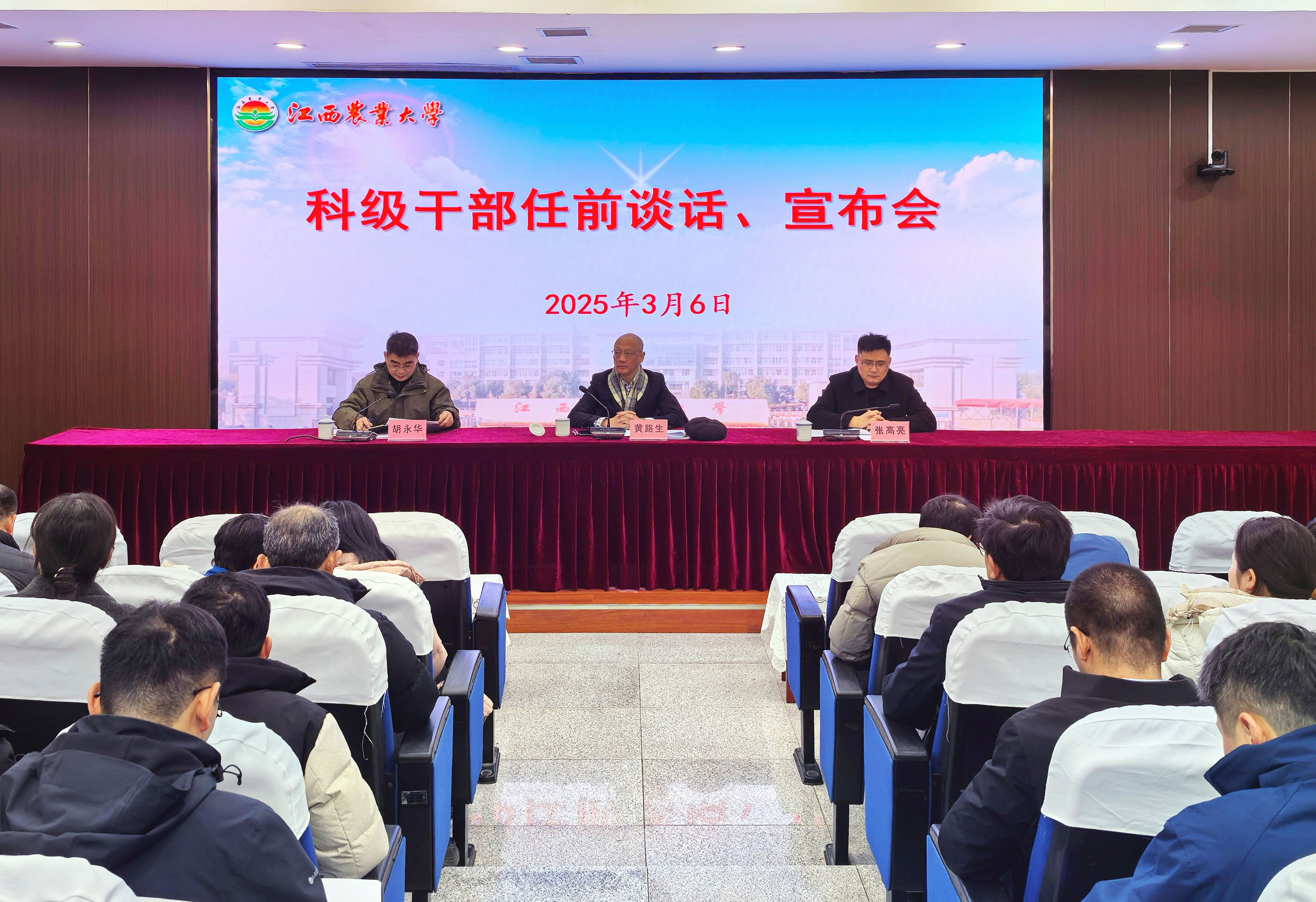 3月6日上午,学校召开新调整科级干部任前集体谈话会。校党委书记黄路生院士出席会议并讲话,副校长张高亮主持会议。调整的科级干部及所在单位的主要负责同志参加会议。