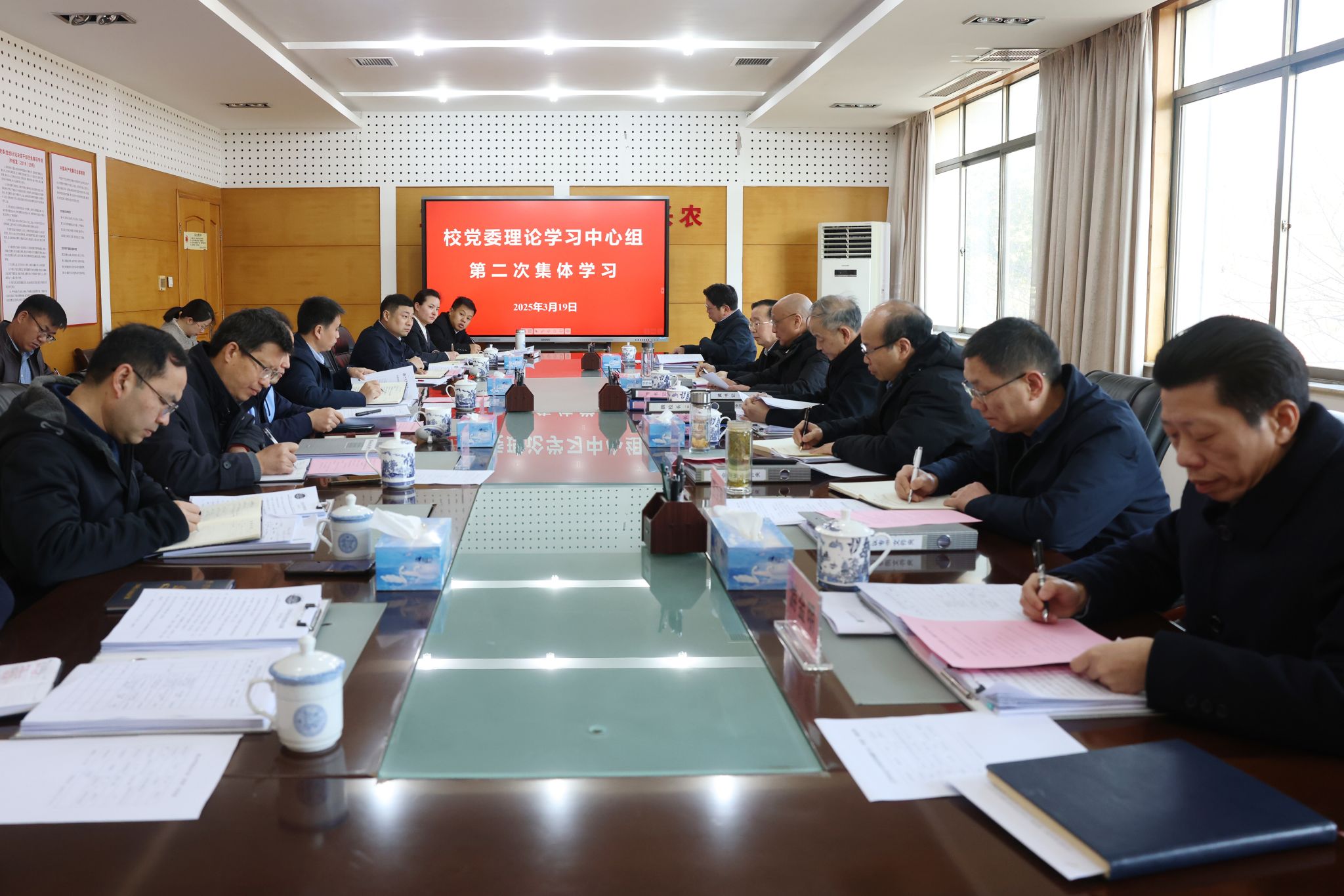 3月19日上午,校党委书记黄路生院士主持召开学校党委理论学习中心组学习会,校党政领导班子成员围绕全国两会精神开展集中学习,农学院、马克思主义学院党委负责同志列席会议。