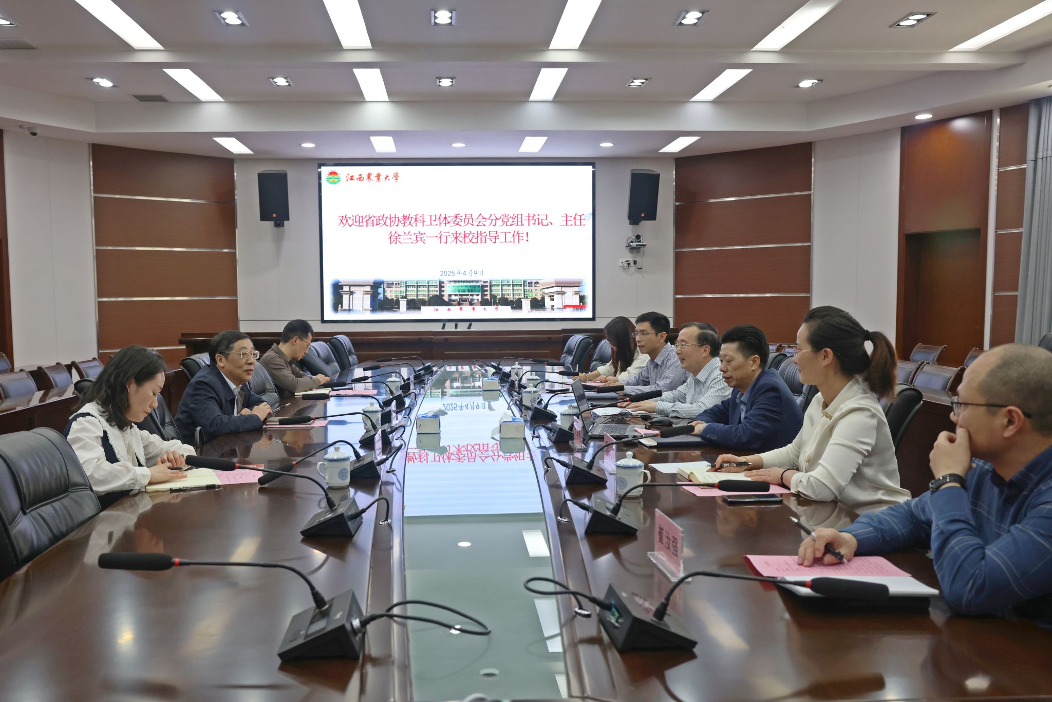 4月9日下午,省政协教科卫体委分党组书记、主任徐兰宾一行来校调研并座谈。会前,校党委书记黄路生院士会见了徐兰宾一行。副校长樊后保主持座谈会,副校长游金明,党委统战部、科技处及部分科技小院负责人参加了座谈。