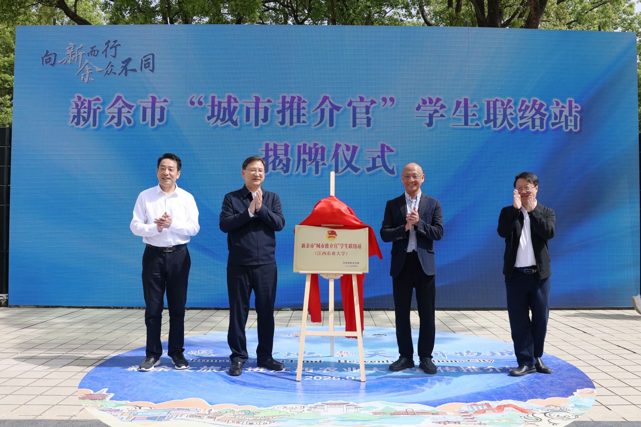 座谈会前,郑光泉一行参观了学校校史馆,与校领导一同走进专场招聘会和文旅美食推介活动现场,了解招聘引才和文旅推介情况。在活动现场,黄路生、郑光泉、林坤、肖秋根共同为新余“城市推介官”学生联络站揭牌。
