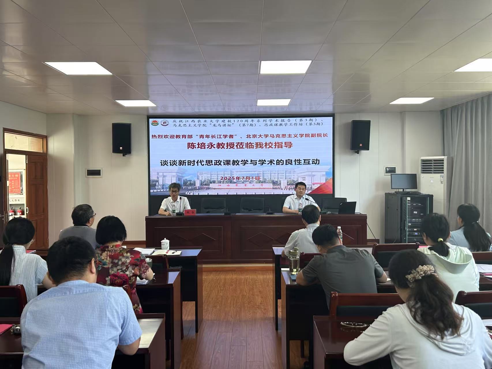 7月3日下午,校党委书记黄路生院士参加学校2025年思政课暑期集体备课会,与思政课教师一起探讨思政课教学内容创新、教学方法改革,并就加强思政课建设、马克思主义学院建设提出明确要求。校党委宣传部、马克思主义学院负责人一起参与研讨。