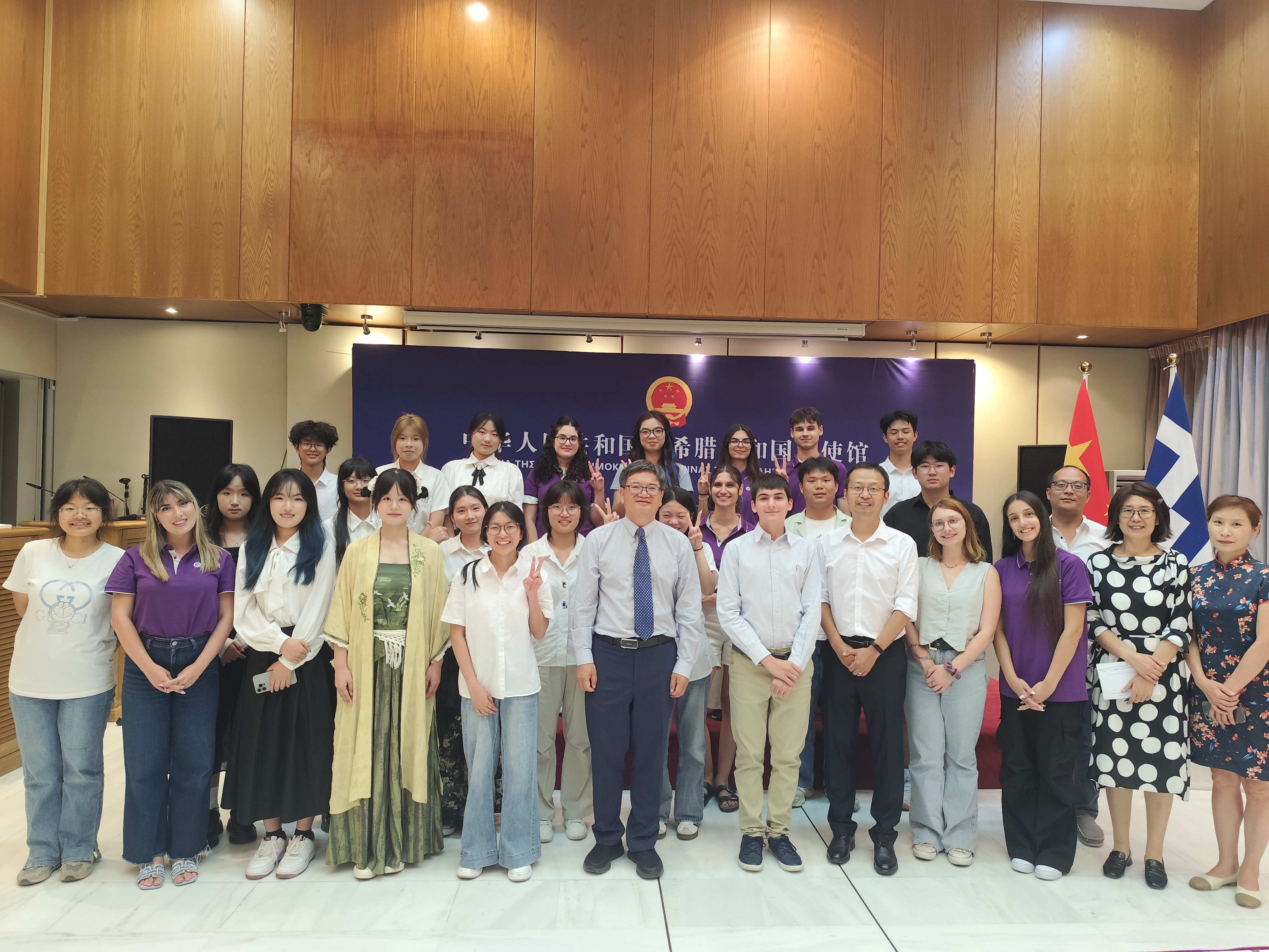 7月21日,伟德暑期希腊学生研学团受邀参加中国驻希腊大使馆“青年π·互访互鉴”活动,中国驻希腊使馆公使衔参赞赖波出席活动并致辞。伟德暑期希腊学生研学团与刚刚结束在中国访问的希腊华欣语言学校师生代表共同参加活动。