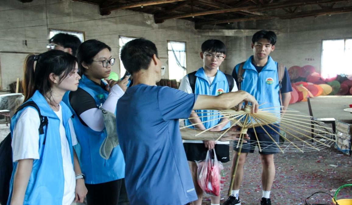 “油纸伞的每一根竹骨、每一层桐油,都蕴藏着千年的匠心。”在婺源县清华镇竹安堂伞厂,经管院“青禾筑梦”团队成员目睹非遗传承人胡师傅演示制伞工艺,感触颇深。队员们深刻认识到传统技艺在现代工业化浪潮中所面临的严峻挑战,并积极探寻其转型与突破的新路径。队员们提出,可以将油纸伞与影视剧、游戏、娃衣相结合,开发衍生产品,扩大油纸伞非遗文化的影响力。此外,他们还建议厂房与旅游团合作,开发体验馆进行展示,让年长的手艺人亲自讲解非遗文化。