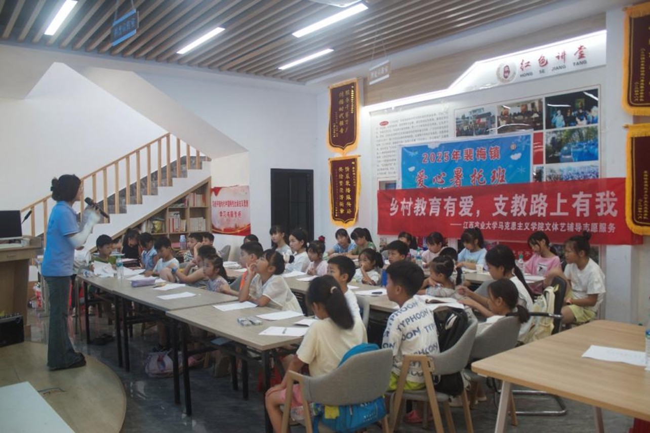 人文院“爱润童心” 支教队在靖安县水口乡开展为期多日的支教活动,为当地儿童带来丰富的特色课程。在‘海洋主题创意简笔画’课程中,队员们引领孩子们以画笔为舟,遨游于海洋世界,描绘出水母、海龟等生物的奇妙形态,在寓教于乐的互动中汲取海洋知识的甘霖。在 “创意音乐手工” 课上,孩子们制作个性化音符卡片,感受音乐与手工的结合之美;在 “体育游戏” 课上,“排雷游戏”“障碍接力” 等活动让孩子们在欢乐中锻炼体能。针对暑期安全问题,支教队开展防溺水专题教育,通过情景模拟、互动问答讲解危险水域辨识、自救互救等知识;还开设普法课堂,利用 “孙悟空为何被压五行山” 等趣味案例,帮助孩子们理解《中华人民共和国未成年人保护法》等基础法规。