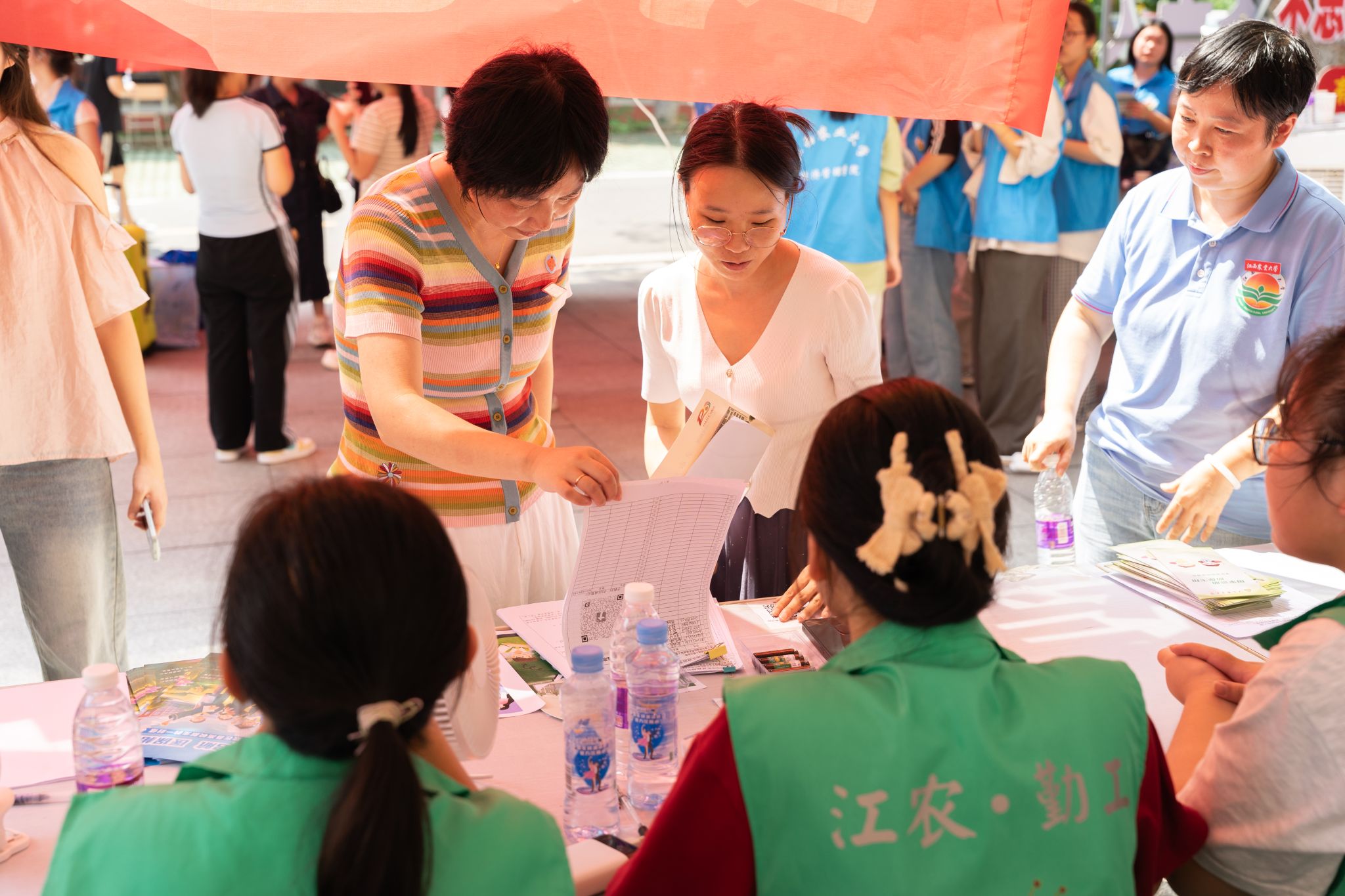 迎新期间,学校在南昌火车站、南昌西站、蛟桥地铁站设立报到接待点,引导新生有序乘坐接站大巴到校;在志敏辅道及各迎新点设置帐篷及风扇,为新生及家长送来阵阵清凉;穿梭在教学区的巡游车,不断向大家介绍学校百廿历史和办学成就。迎新志愿者“一对一”对接新生,为每一位前来报到的新同学提供校园引导、搬运行李、问题解答等贴心服务。校园巡演、快闪表演、文艺演出、趣味互动、代表性景观打卡等活动,向新生及家长展示了学校厚重历史文化底蕴和丰富多彩校园生活。