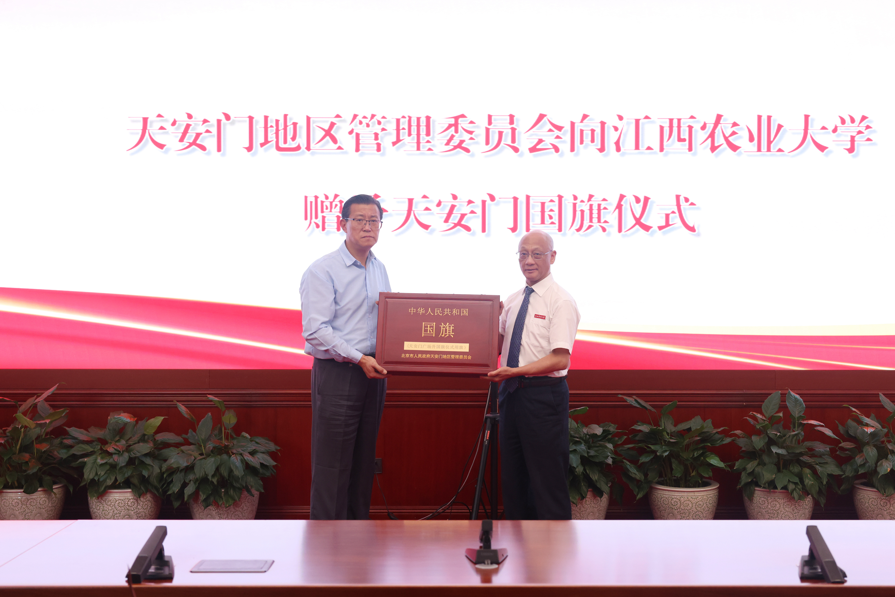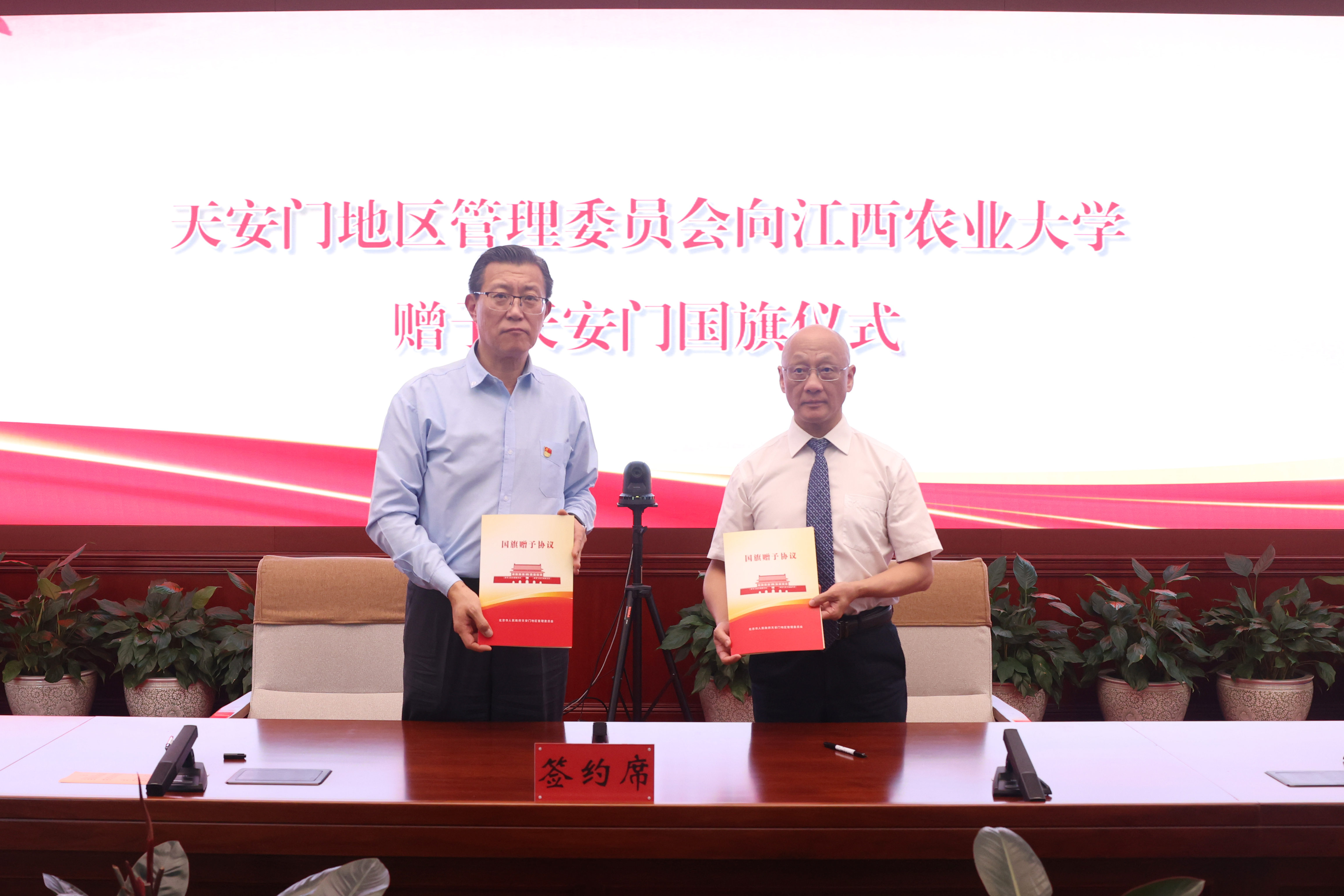 9月25日,北京市人民政府天安门地区管理委员会向bevictor伟德国际1946官网赠予天安门国旗仪式在京举行。天安门地区管委会党组成员、副主任姚辉向学校赠予国旗,校党委书记黄路生院士代表学校接收国旗,双方共同签署《国旗赠予协议》。学校获赠的国旗旗长5米、高3.3米,整幅旗面无拼接,五颗星采用人工丝网印染工艺,编号为2024-0325号,是伟德建校120周年倒计时一周年,即2024年11月20日在天安门广场升起的国旗。