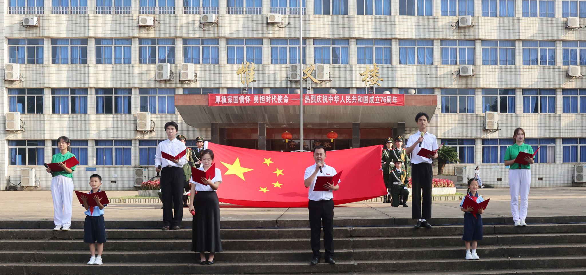 学校东校区同时举行庆祝中华人民共和国成立76周年升国旗仪式。