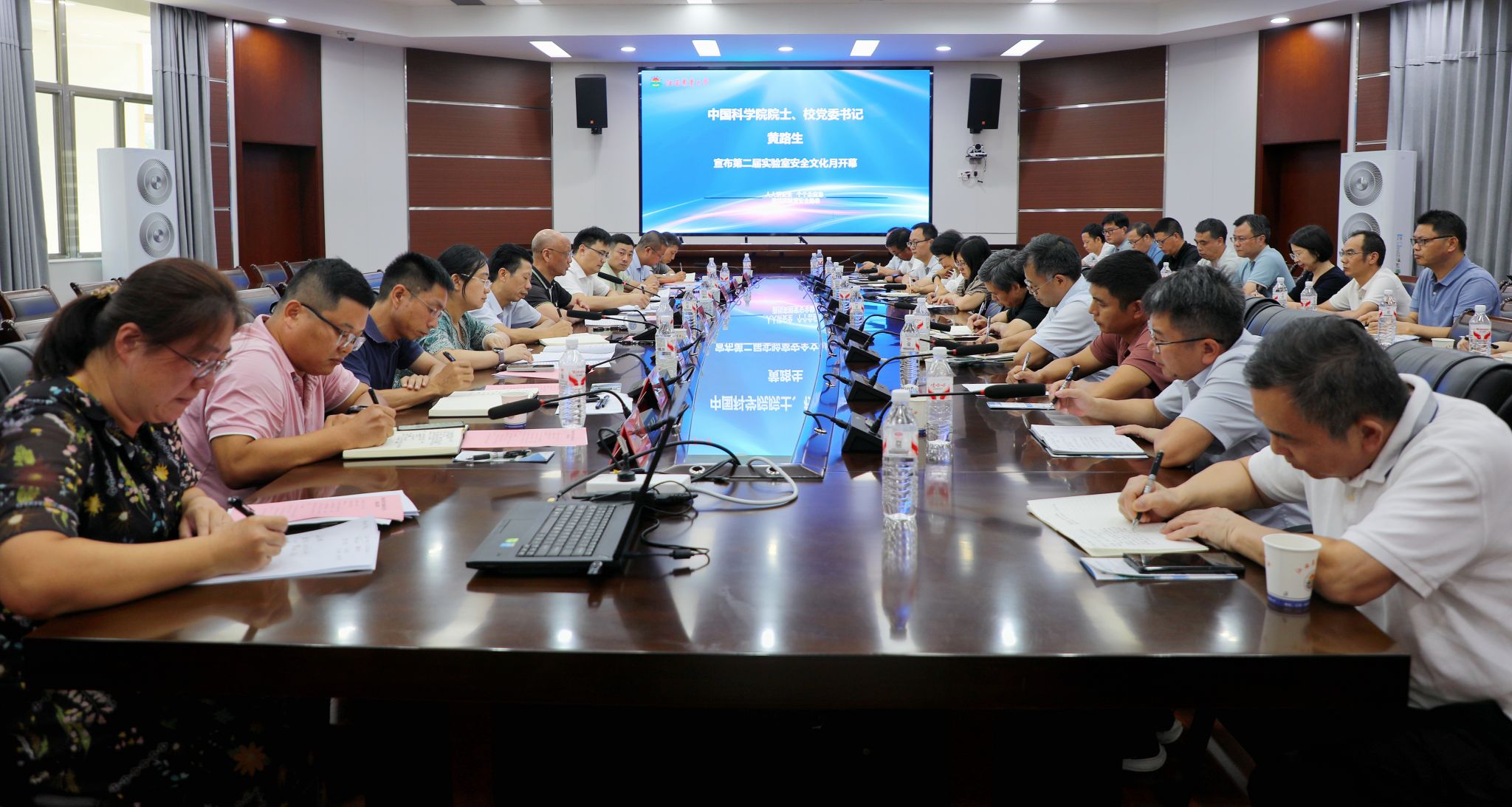 10月9日下午,以“人人讲安全,个个会应急-查找实验室安全隐患”为主题的学校第二届实验室安全文化月活动开幕式在校办二楼圆厅举行,校党委书记黄路生院士,副校长张高亮、游金明出席,相关职能部门及二级学院负责人参会。