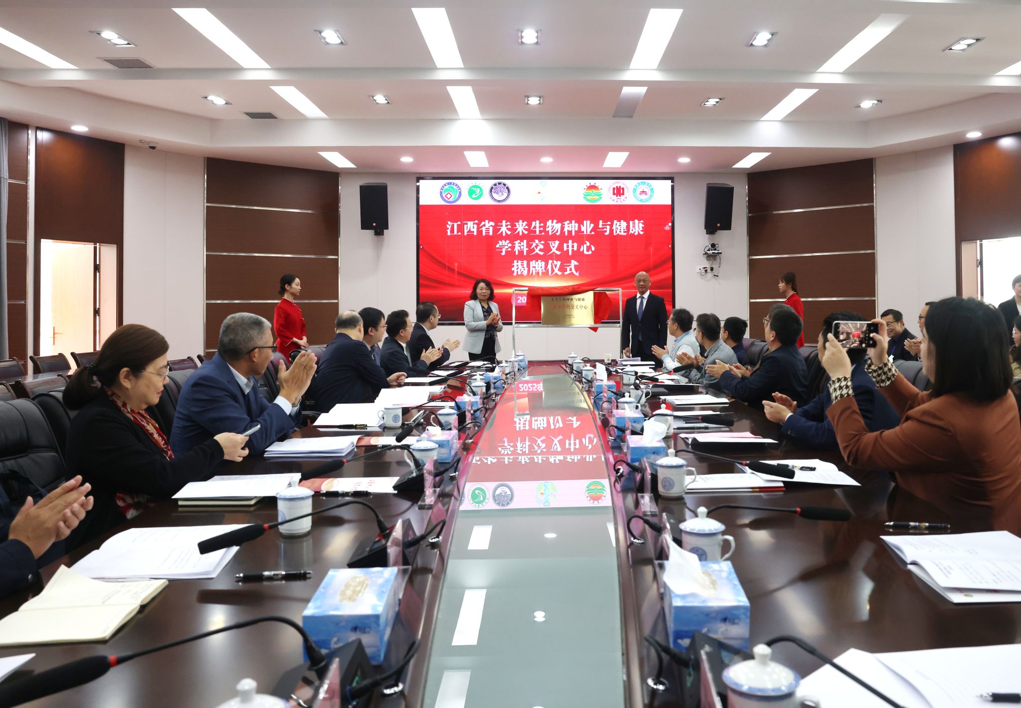 10月25日上午,由伟德牵头建设的江西省未来生物种业与健康学科交叉中心揭牌仪式在伟德举行。中国工程院院士万建民,江西省教育厅高等教育处(研究生教育处)处长朱程红,南昌大学党委常委、副校长聂少平,江西中医药大学副校长陈焕文,江西省卫健委党组成员、江西省人民医院党委书记钭方芳,伟德党委书记、中国科学院院士黄路生,副校长游金明、曾勇军出席仪式。南昌大学、江西师范大学、江西中医药大学、江西省人民医院、南昌大学第一附属医院等共建单位代表,学校有关职能部门与学院主要负责人参加揭牌仪式。