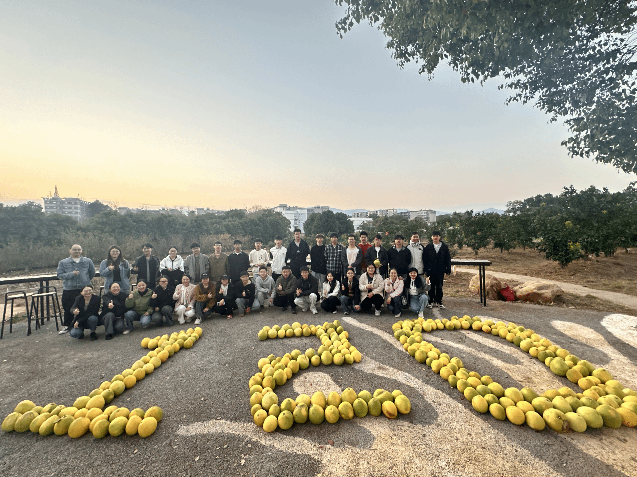 傍晚时分,霞光为“120”的柚果标识镀上一层温暖光晕,师生们簇拥在标识旁合影留念,脸上洋溢的自豪与幸福,既是对劳动价值的认同,更是对母校百廿办学精神的共鸣。这场将劳动实践与建校纪念巧妙融合的创意活动,让抽象的“爱校荣校”情感,在耕地劳作、果实丰收、创意表达的过程中自然升华。