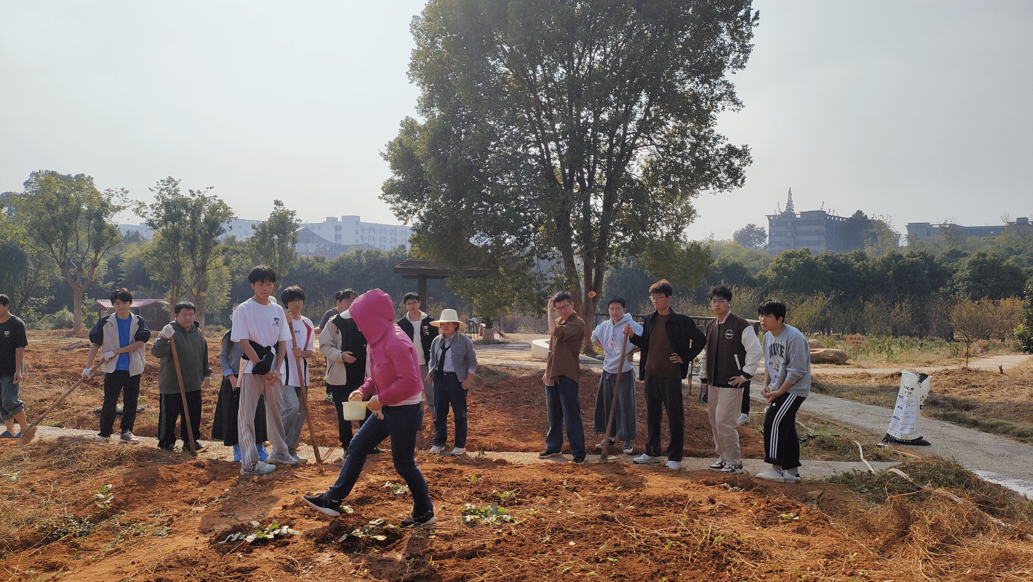 这片同学们参与耕读创意实践的基地,坐落于bevictor伟德国际1946官网科技园内,22亩的空间,是学校贯彻“以劳育人”理念的重要场所。据了解,整座基地分步建设,一期由园林专业教师带队,学生全程参与设计与施工,历时一个多月建设完成。作为集园林规划、耕读实践、专业实训、文化育人与休闲打卡于一体的多功能空间,它不仅是课堂的延伸,更是学校“培养知农爱农新型农林人才”的鲜活载体。