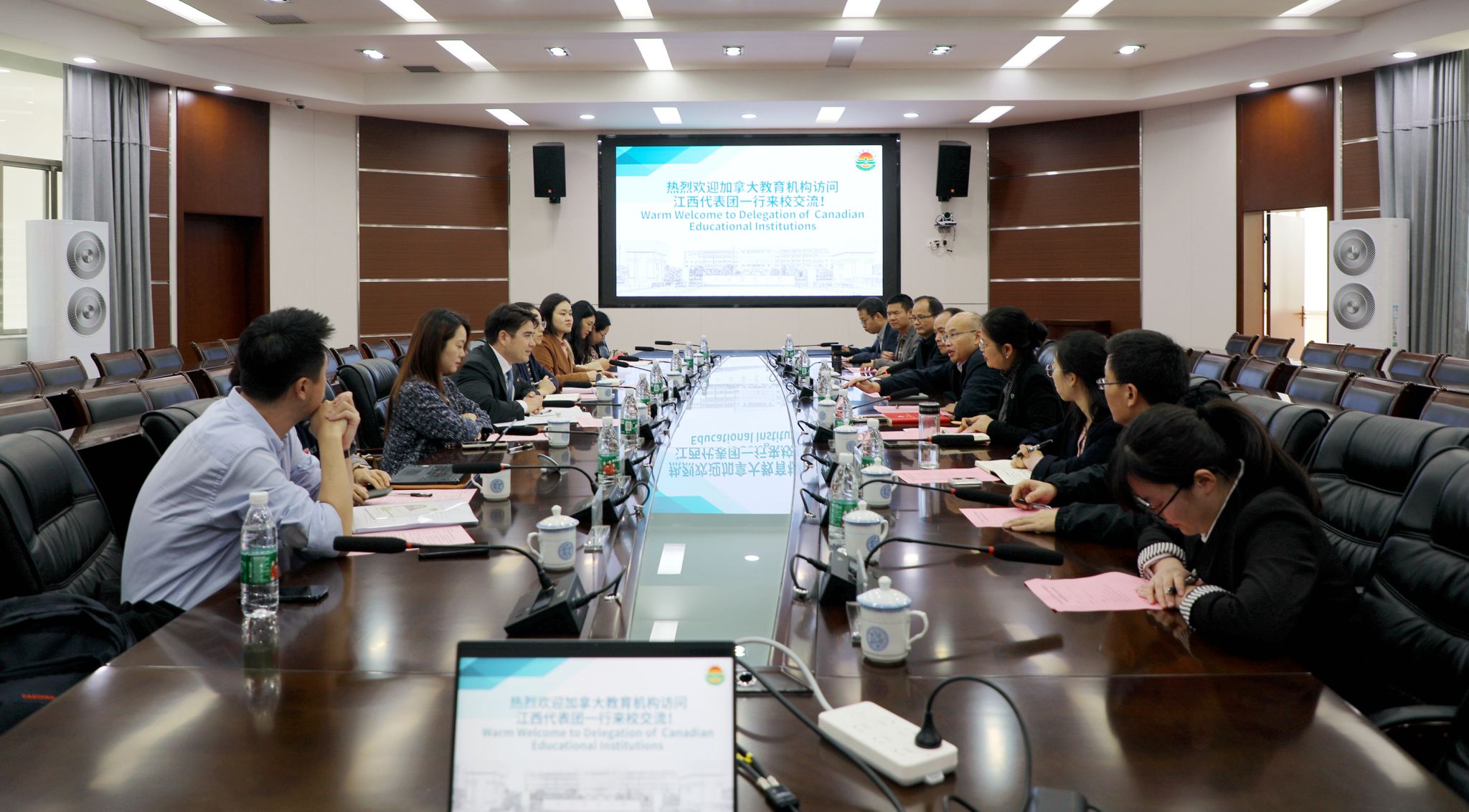 11月11日,加拿大教育机构代表团一行8人在加拿大驻广州总领馆副领事兼商务专员吴俊才先生带领下来校访问。副校长刘木华在校办二楼圆厅会议室会见来宾并座谈交流,国际交流处、教务处、人事处和相关学院负责人陪同参加。