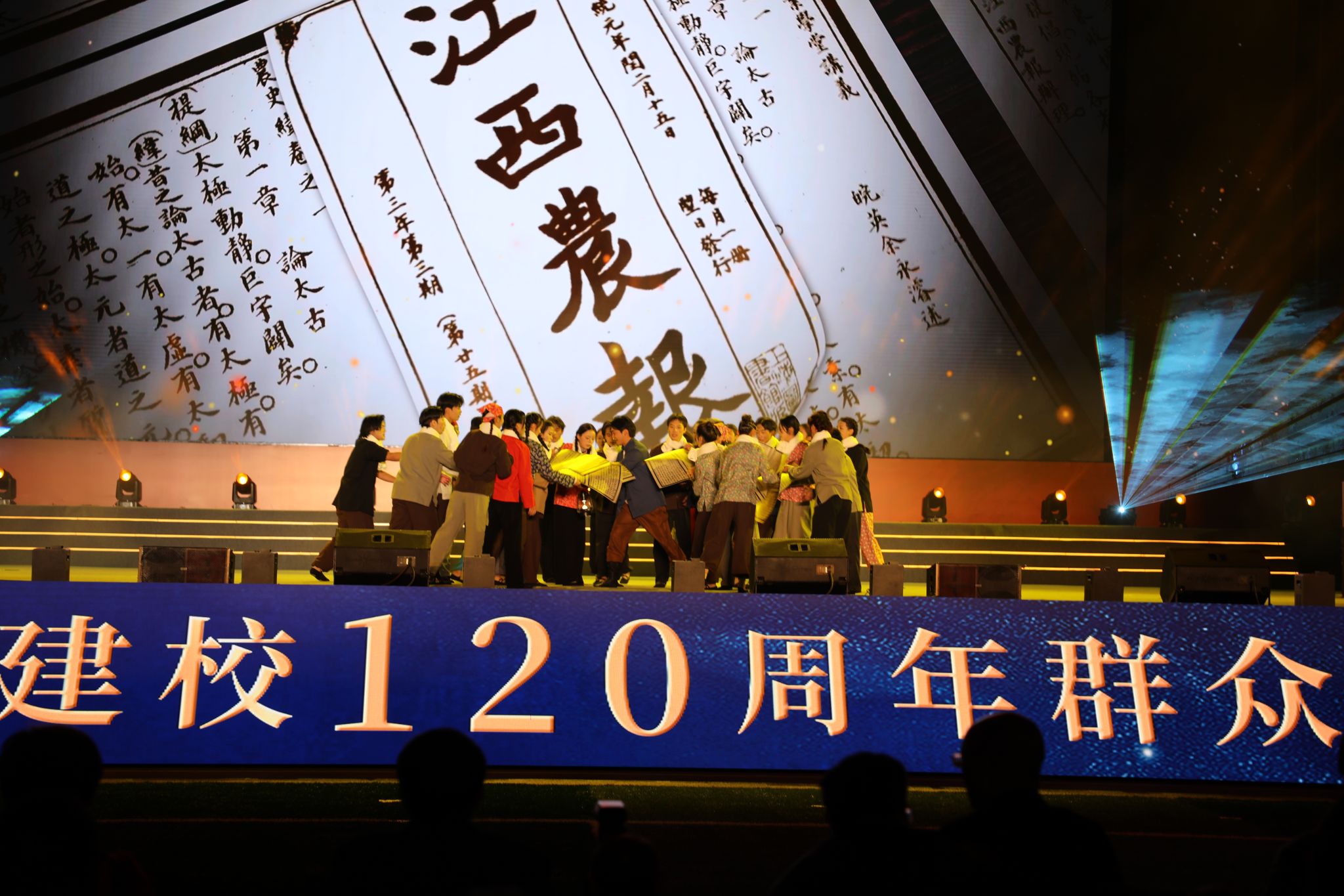 百廿弦歌不辍,薪火代代相传。11月20日晚,“立德树人双甲子 强农兴农创一流”bevictor伟德国际1946官网建校120周年文艺活动在北区田径场隆重举行。田径场上星光璀璨、欢声漫天。众多嘉宾、海内外校友、兄弟高校代表与全校师生欢聚一堂,共庆华诞。全球江农人通过视频直播平台同步观看,共赴百廿之约。本次活动由北京广播电视台、江西日报社、江西日报传媒集团文化科技公司的专业主持人及学校大学生艺术团指导老师联袂主持,参演人员达2300余名师生。