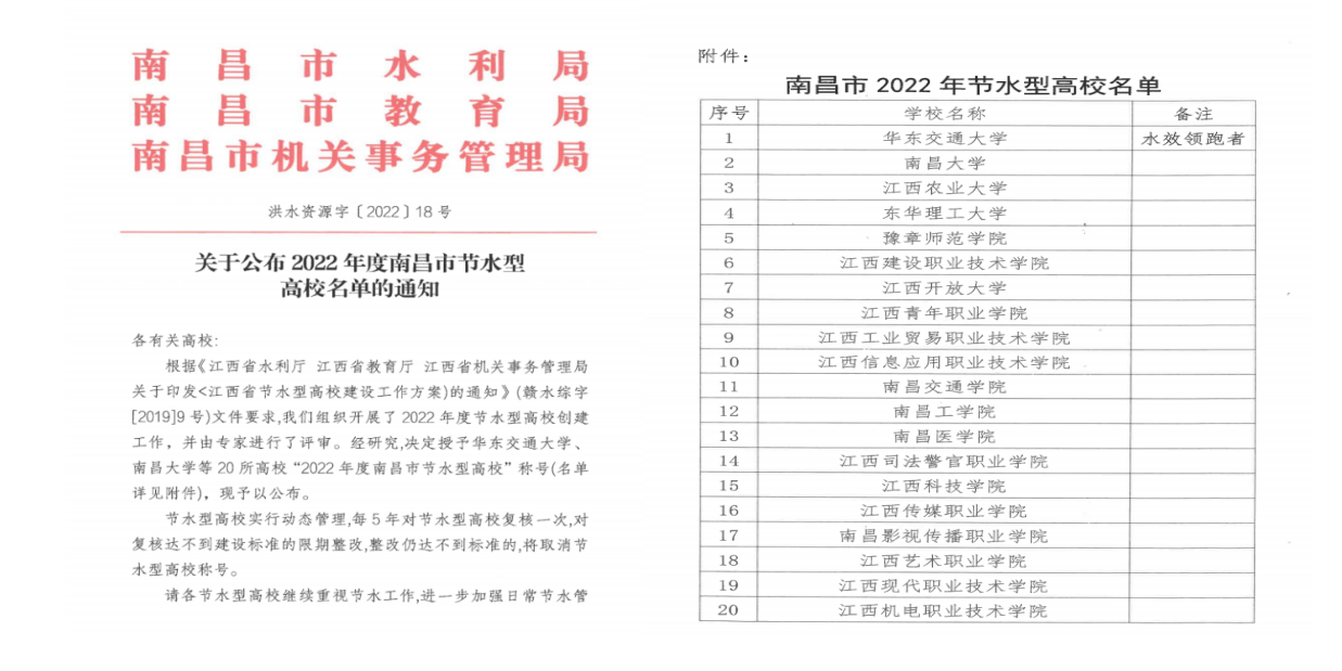 伟德获评2022年度南昌市节水型高校
