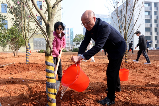 草长莺飞三月天,植树添绿正当时。3月10日,在第45个植树节即将来临之际,校领导黄路生、赵小敏、蔡海生、许斌华、黄英金、乔金霞、张高亮,与相关部门负责人、师生代表一起,来到科技大楼西南侧参加义务植树活动。校...
