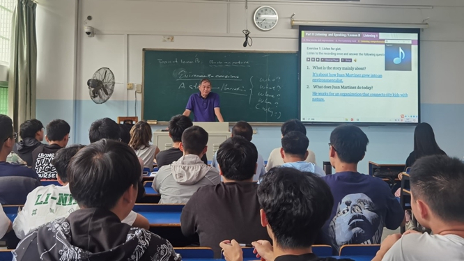 9月15日,校长魏辅文院士深入《大学英语III》课堂,与水产2201班、2202班的同学们一起聆听外国语学院巫绍华老师授课,并与同学们一起参与课堂互动。课后,魏辅文直接用英语与同学们交流课堂讨论题“What does an env...