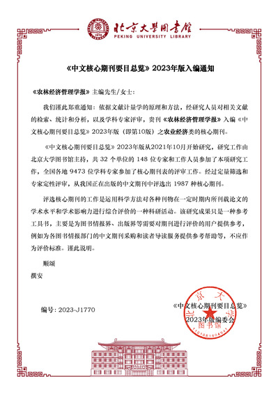 12月26日,从《中文核心期刊目录总览》2023年版编委会获悉,伟德《bevictor伟德国际1946官网学报》《农林经济管理学报》双双入选《中文核心期刊要目总览》2023年版(即第10版)。《bevictor伟德国际1946官网学报》连续7次入选北京大学中文核心...