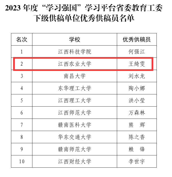 日前,中共江西省委教育工委发文公布了2023年度“学习强国”学习平台省委教育工委下级优秀学员、优秀供稿单位和优秀供稿员评选结果,伟德获评2023年度“学习强国”学习平台省委教育工委下级优秀供稿单位,胡嘉麒老师...