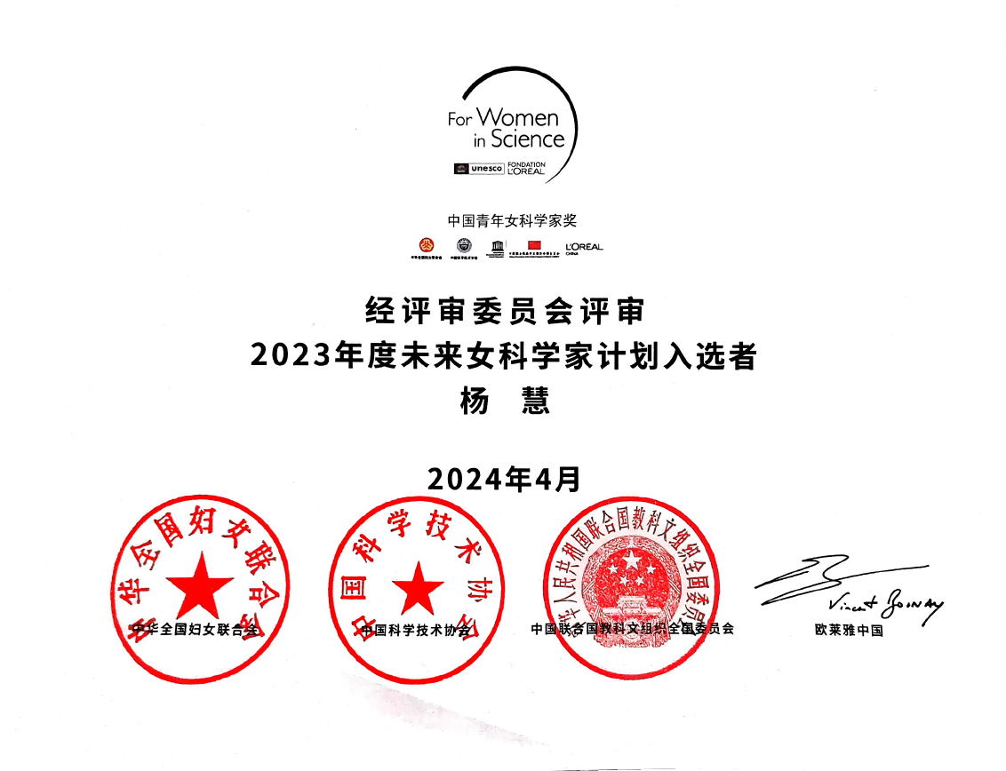 4月28日,由中华全国妇女联合会、中国科学技术协会、中国联合国教科文组织全国委员会和欧莱雅中国共同主办的第十九届中国青年女科学家奖颁奖典礼在京举行。伟德生物科学与工程学院杨慧研究员入选第八届未来女科学家计...